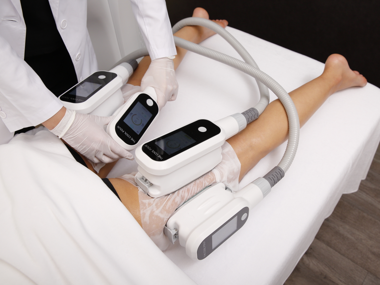 最新の脂肪冷却痩身マシンで、皮膚と皮下脂肪層を吸引しながらお客様の皮下脂肪の厚みに合わせた温度<0度前後>にて約50分程冷却します。